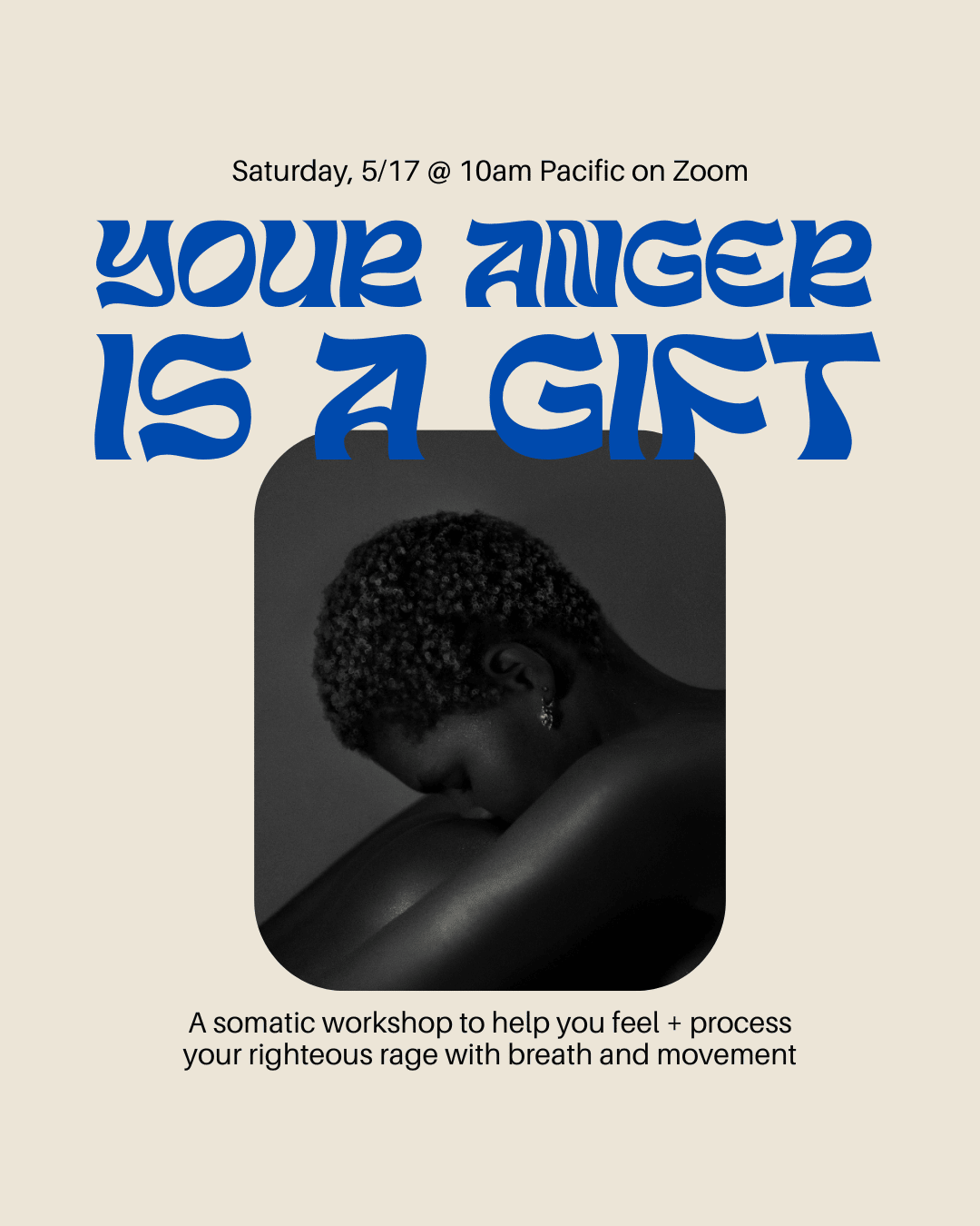 A three-hour somatic workshop to help you feel + process your righteous rage using breath and movement.